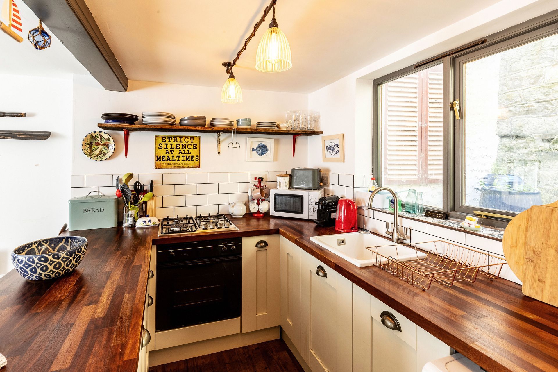 A charming 18th century mid terrace retreat close to South Bay Beach. Pet friendly. Sea views. Free parking. Wood-burning stove. Sleeps 4.